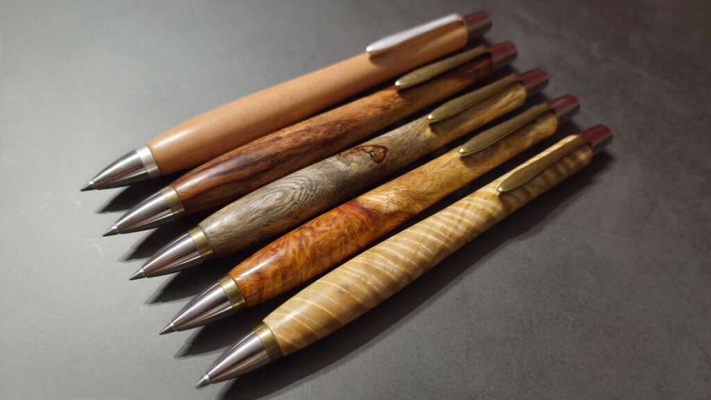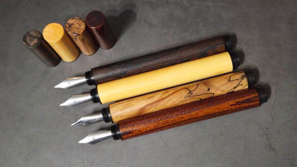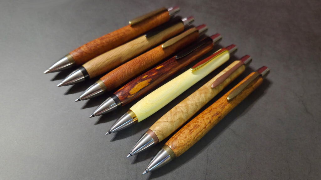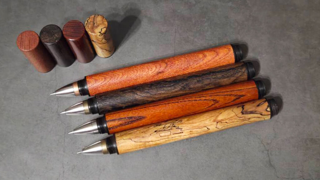 朱椿粋では店頭にて350種類以上の樹木からお好きな木を選びいただき、ご自身で木軸ペンを制作することができます。ペン作り体験はご予約制となっておりますので、日程をご確認の上ご予約下さい。